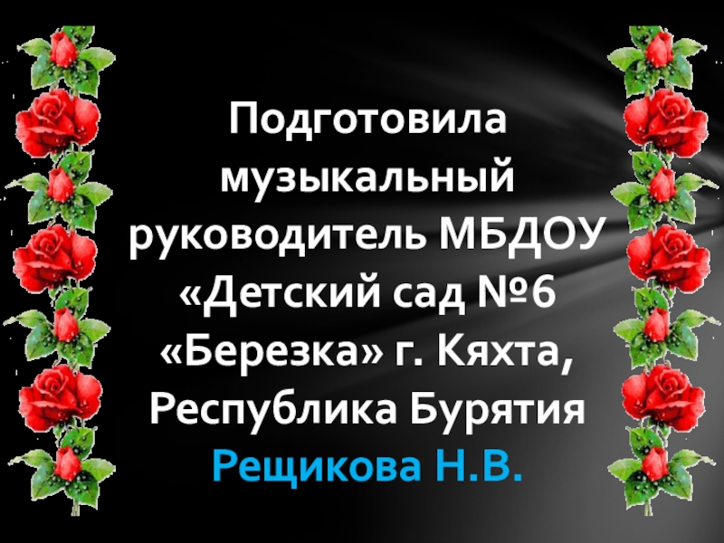 Подготовила музыкальный руководитель МБДОУ «Детский сад №6 «Березка» г. Кяхта, Республика БурятияРещикова Н.В.
