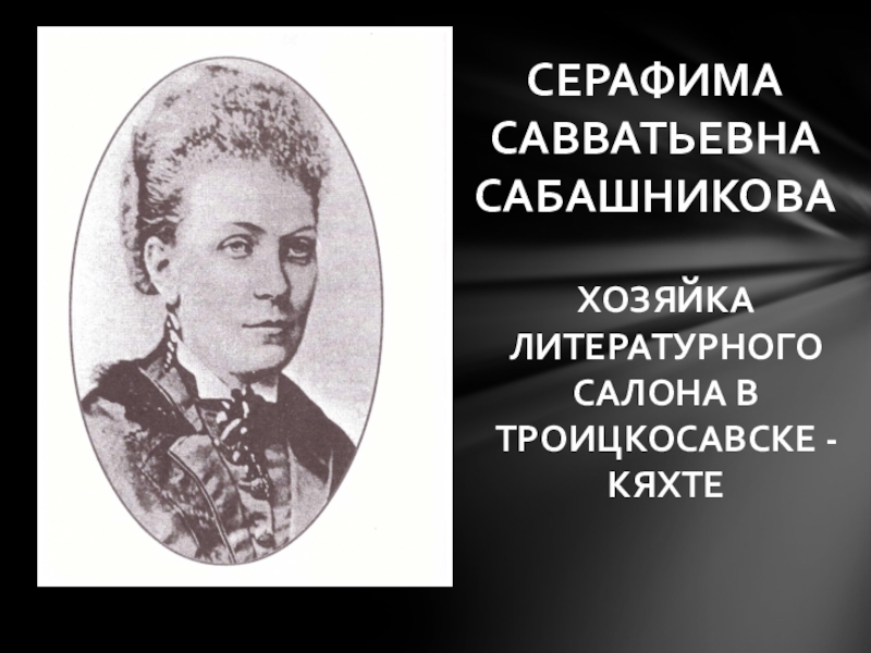 СЕРАФИМА САВВАТЬЕВНА САБАШНИКОВАХОЗЯЙКА ЛИТЕРАТУРНОГО САЛОНА В ТРОИЦКОСАВСКЕ - КЯХТЕ