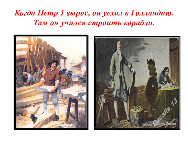 Слайд 4Когда Петр 1 вырос, он уехал в Голландию. Там он учился