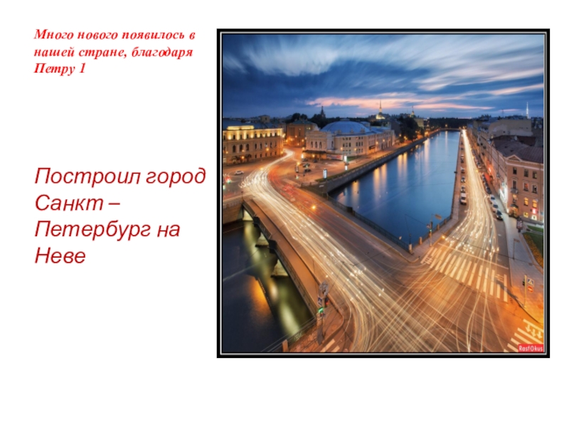 Много нового появилось в нашей стране, благодаря Петру 1Построил город Санкт – Петербург на Неве