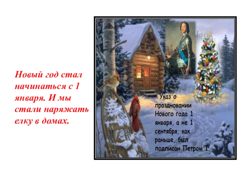 Слайд 10Новый год стал начинаться с 1 января. И мы стали наряжать