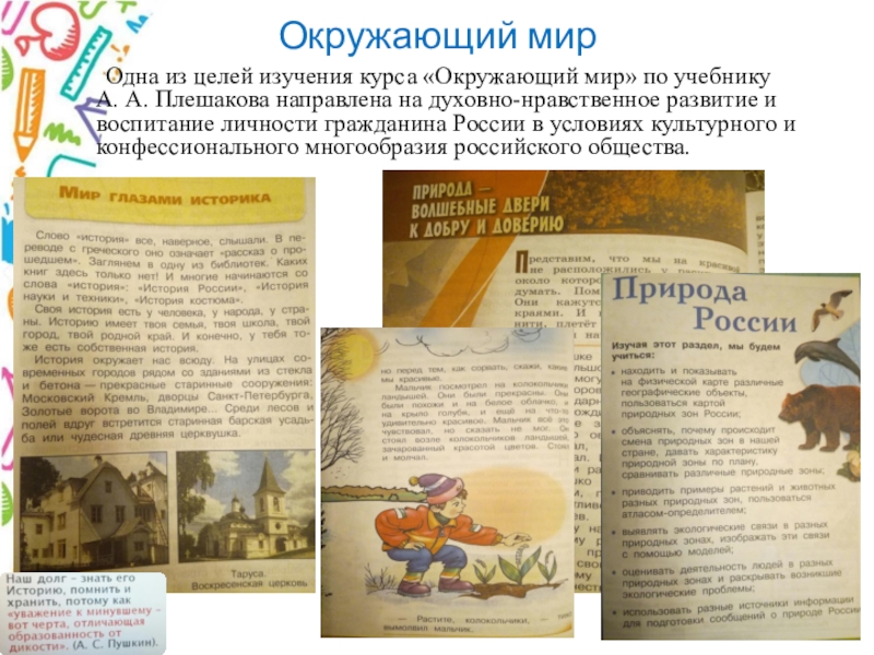 мир» по учебнику А. А. Плешакова направлена на духовно-нравственное развитие и воспитание личности гражданина России в условиях культурного и конфессионального многообразия российского общества.