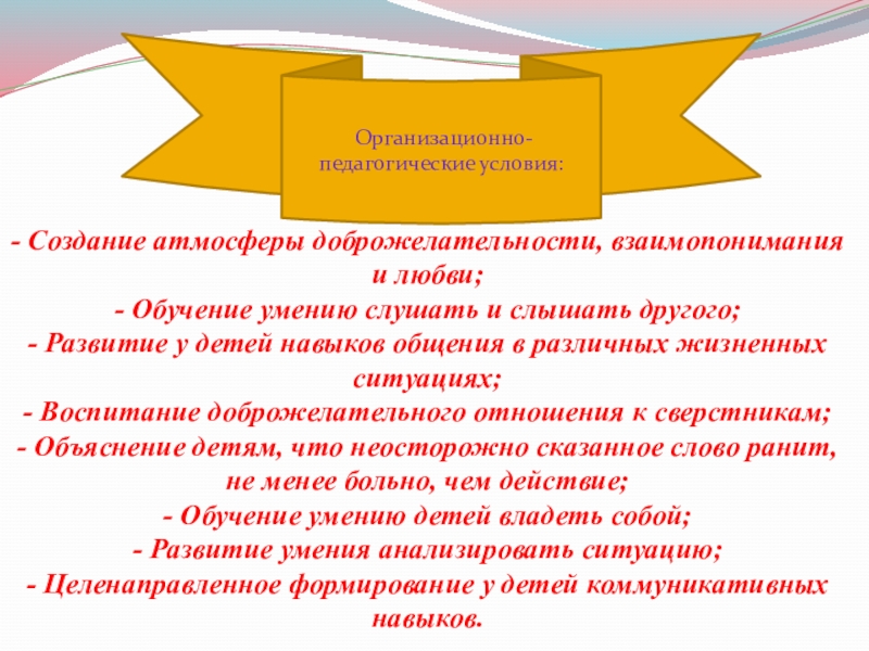 Организационно-педагогические условия: