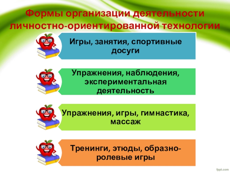 Слайд 6Формы организации деятельности личностно-ориентированной технологии