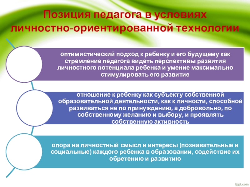 Позиция педагога в условиях  личностно-ориентированной технологии
