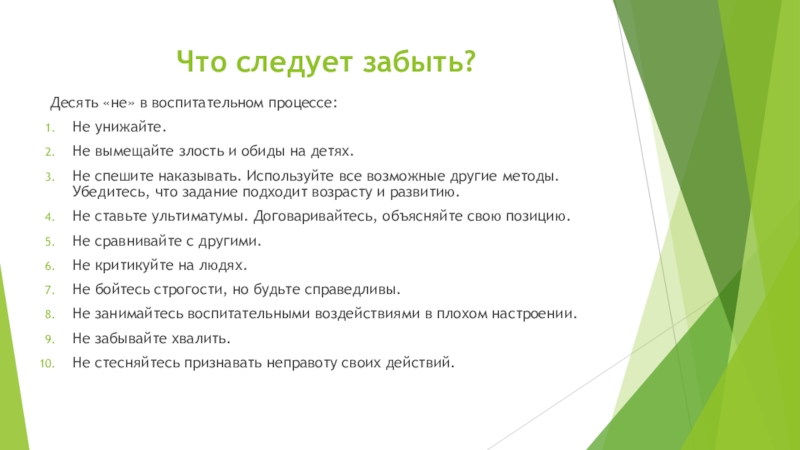 Не занимайтесь воспитательными воздействиями в плохом настроении.