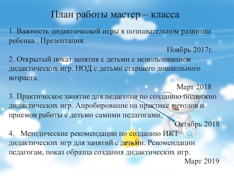 4. Методические рекомендации по созданию ИКТ дидактических игр для занятий с детьми. Рекомендации педагогам, показ образца создания дидактических игр.