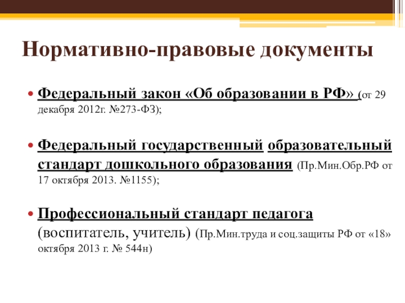 Знание основных документов о правах ребенка и обязанностях взрослых по отношению к детям;