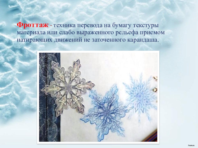 Слайд 16Фроттаж - техника перевода на бумагу текстуры материала или слабо выраженного рельефа