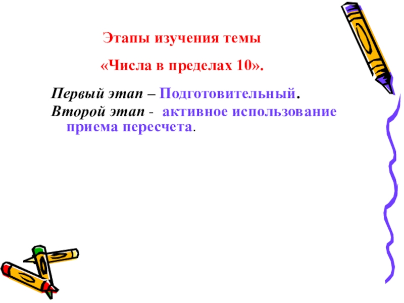 Слайд 6Этапы изучения темы «Числа в пределах 10».