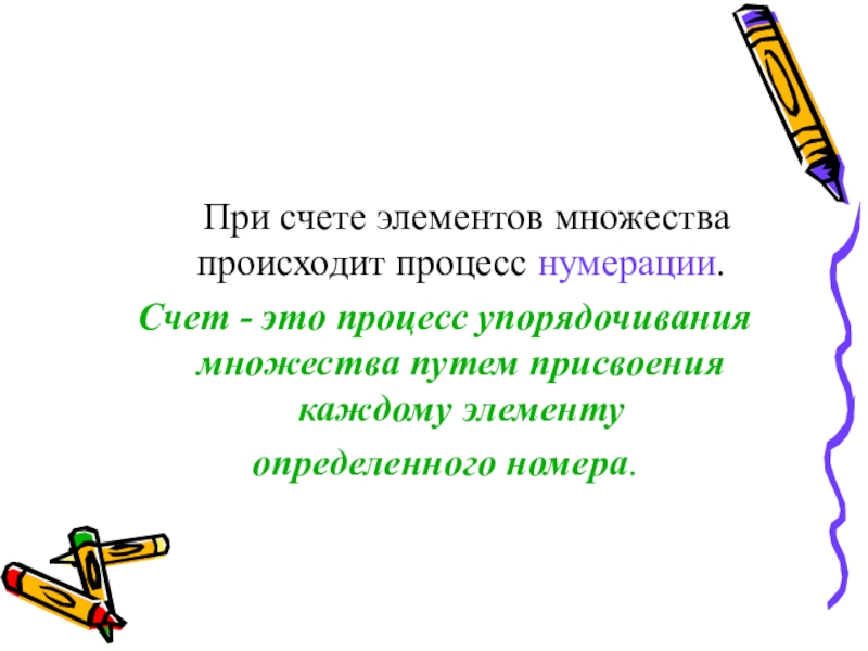 Слайд 3 При счете элементов множества происходит процесс нумерации.