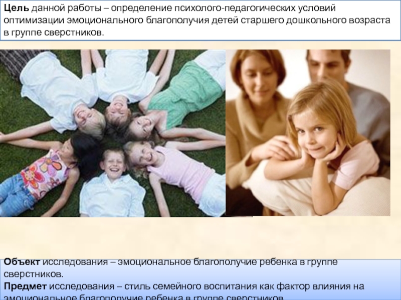 Предмет исследования – стиль семейного воспитания как фактор влияния на эмоциональное благополучие ребенка в группе сверстников.