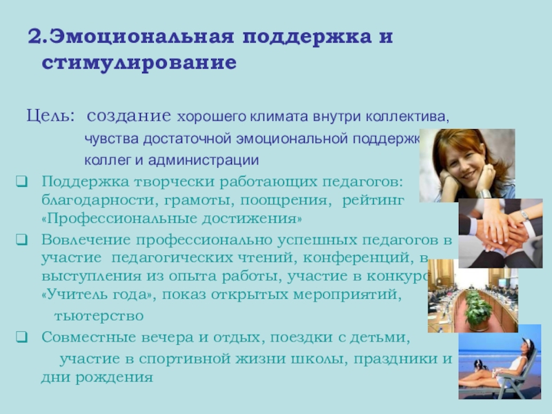 Слайд 21 2.Эмоциональная поддержка и стимулирование