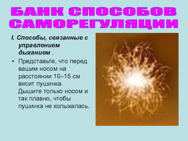 Слайд 27I. Способы, связанные с управлением дыханием .