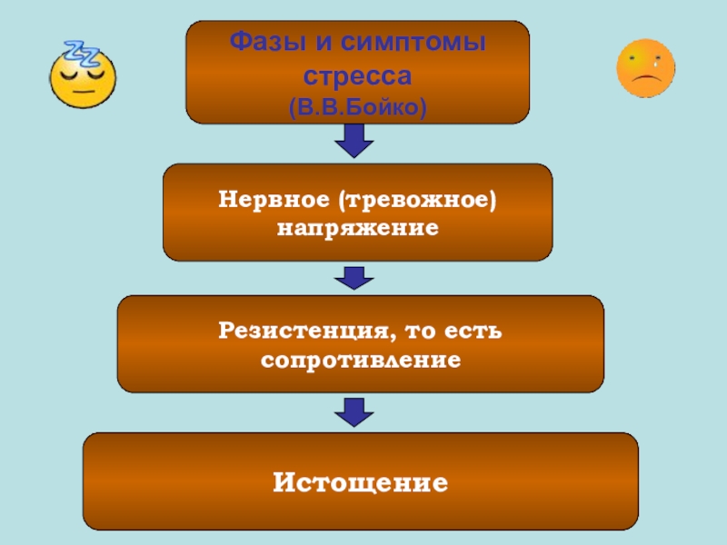 Фаза резистенции (сопротивление нарастающему стрессу). В этой фазе человек пытается более или менее успешно оградить себя от неприятных впечатлений.