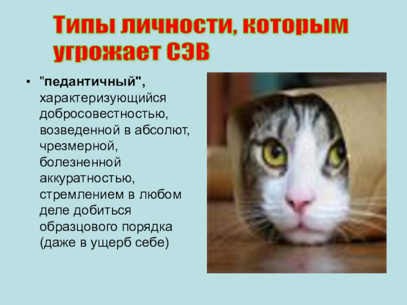Слайд 9"педантичный", характеризующийся добросовестностью, возведенной в абсолют, чрезмерной, болезненной аккуратностью, стремлением в