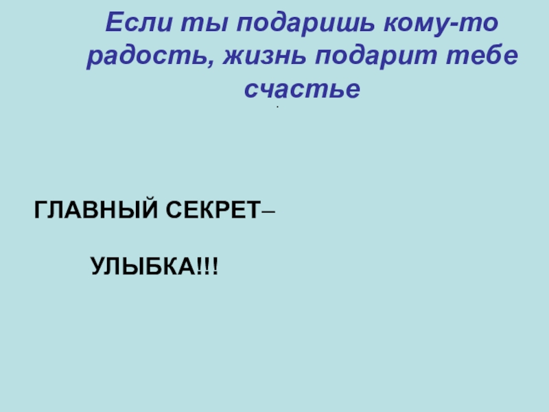 Слайд 26Если ты подаришь кому-то радость, жизнь подарит тебе счастье