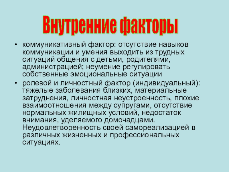 Слайд 8коммуникативный фактор: отсутствие навыков коммуникации и умения выходить из трудных ситуаций