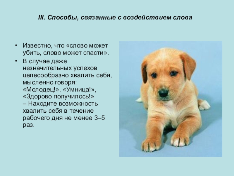 незначительных успехов целесообразно хвалить себя, мысленно говоря: