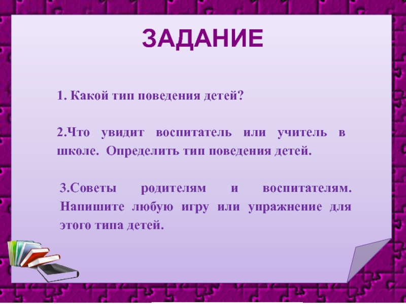 3.Советы родителям и воспитателям. Напишите любую игру или упражнение для этого типа детей.