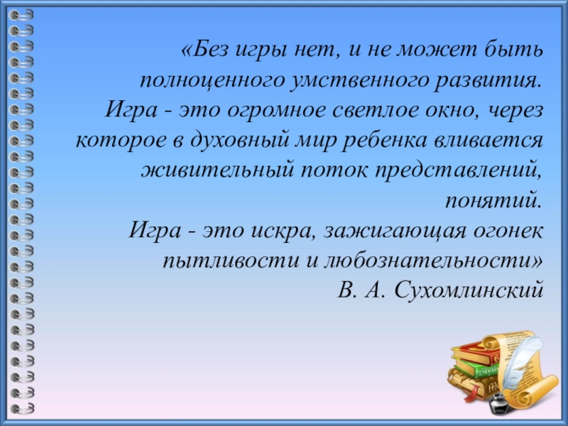 Слайд 2«Без игры нет, и не может быть полноценного умственного развития.