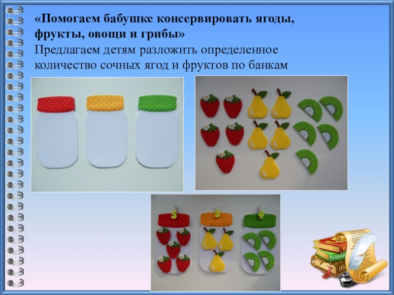 Слайд 7«Помогаем бабушке консервировать ягоды, фрукты, овощи и грибы»