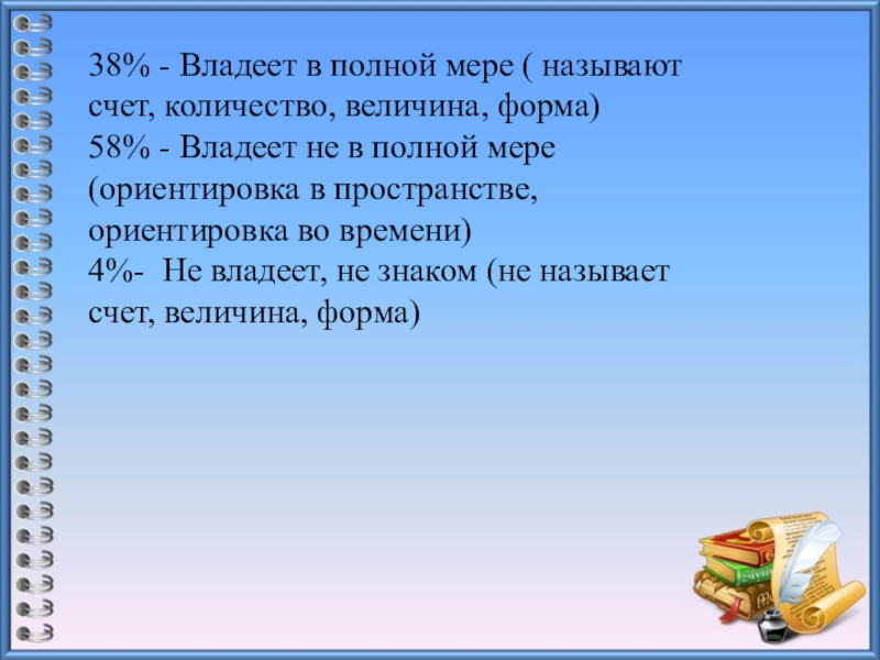 Слайд 2238% - Владеет в полной мере ( называют счет, количество, величина,