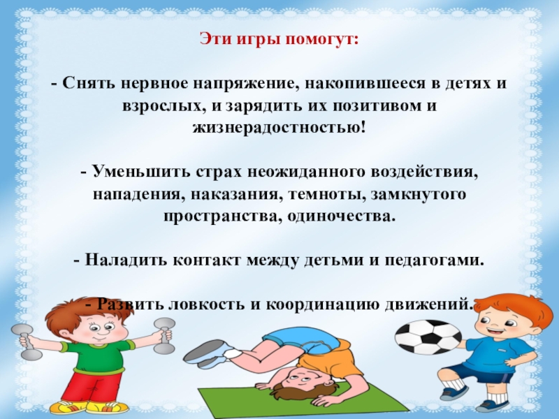 - Снять нервное напряжение, накопившееся в детях и взрослых,