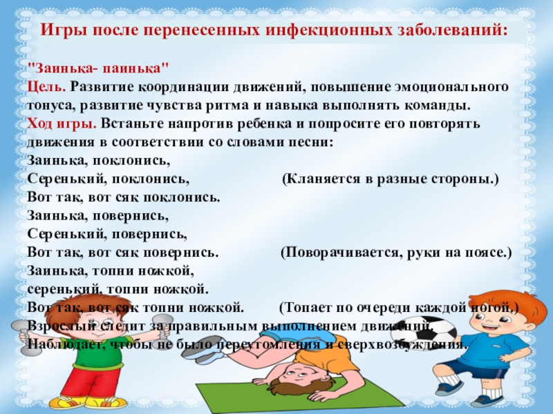 Ход игры. Встаньте напротив ребенка и попросите его повторять движения в соответствии со словами песни: