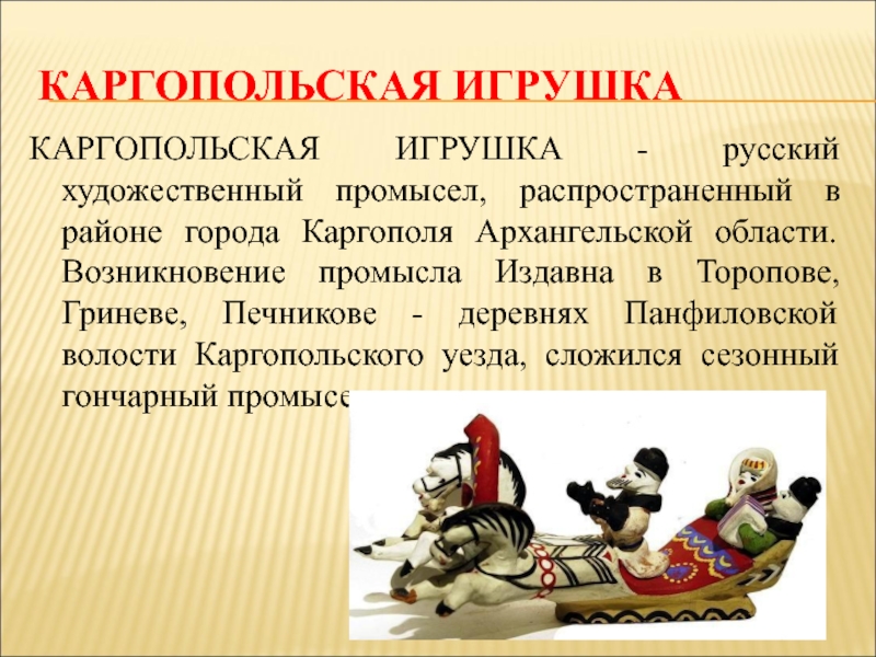 КАРГОПОЛЬСКАЯ ИГРУШКА - русский художественный промысел, распространенный в районе города