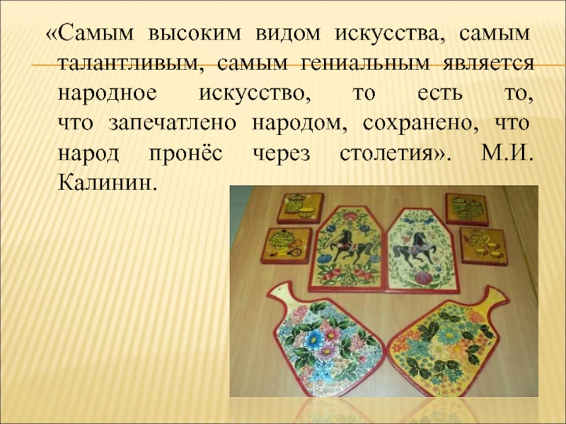 Слайд 2 «Самым высоким видом искусства, самым талантливым, самым гениальным является народное