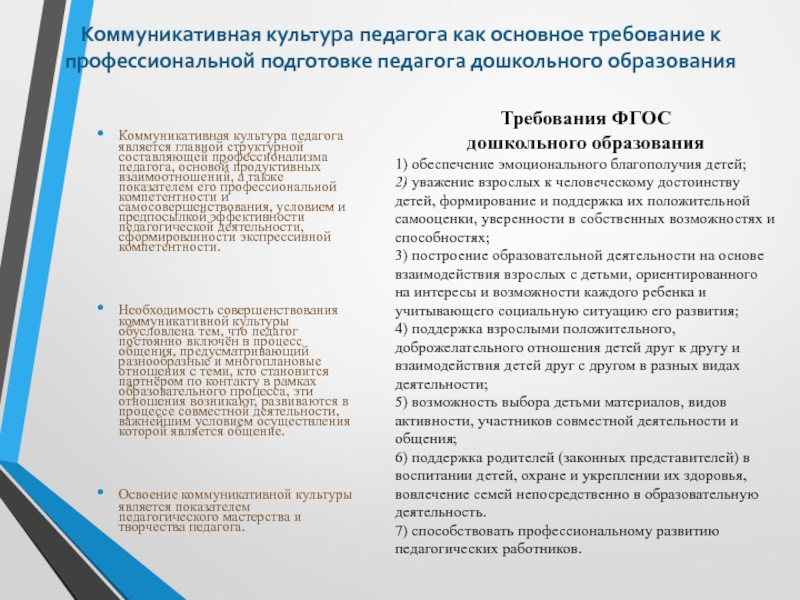 Освоение коммуникативной культуры является показателем педагогического мастерства и творчества педагога.