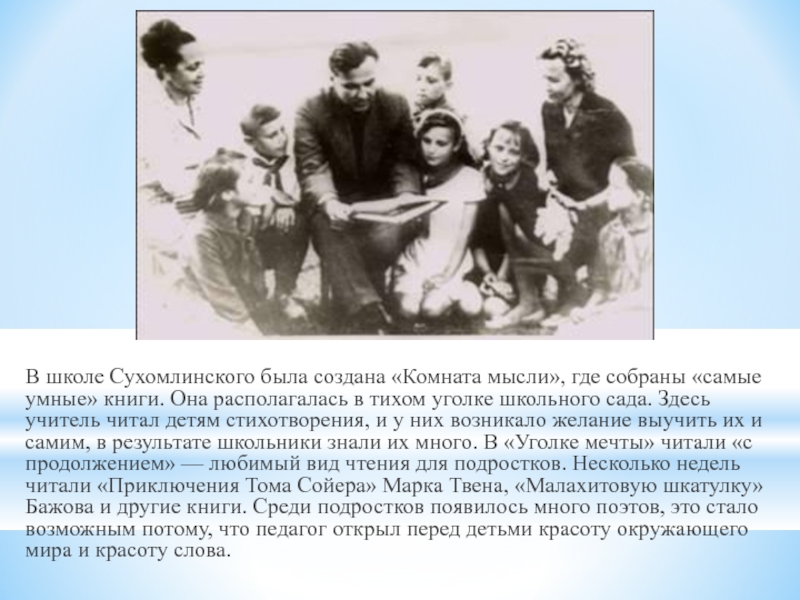 Слайд 8В школе Сухомлинского была создана «Комната мысли», где собраны «самые умные»