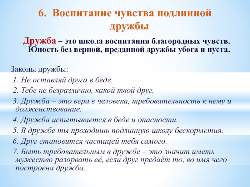 5. В дружбе ты проходишь подлинную школу бескорыстия.