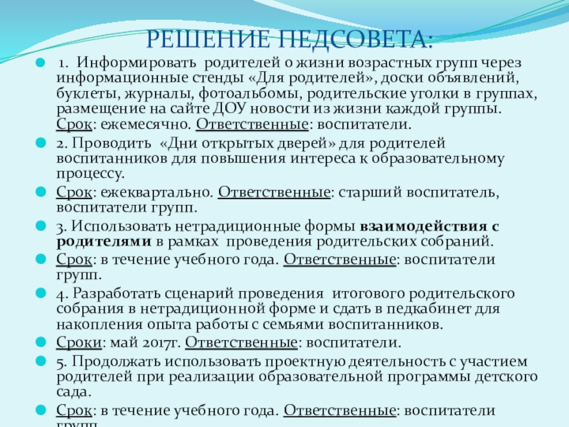 Слайд 24РЕШЕНИЕ ПЕДСОВЕТА: