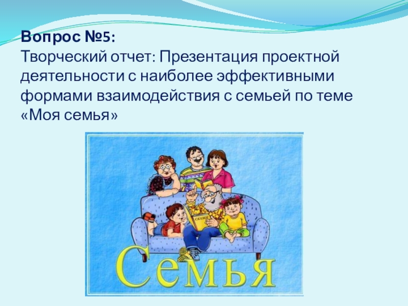 5. Творческий отчет: Презентация эффективных формам взаимодействия с родителями воспитанников по теме «Моя семья»