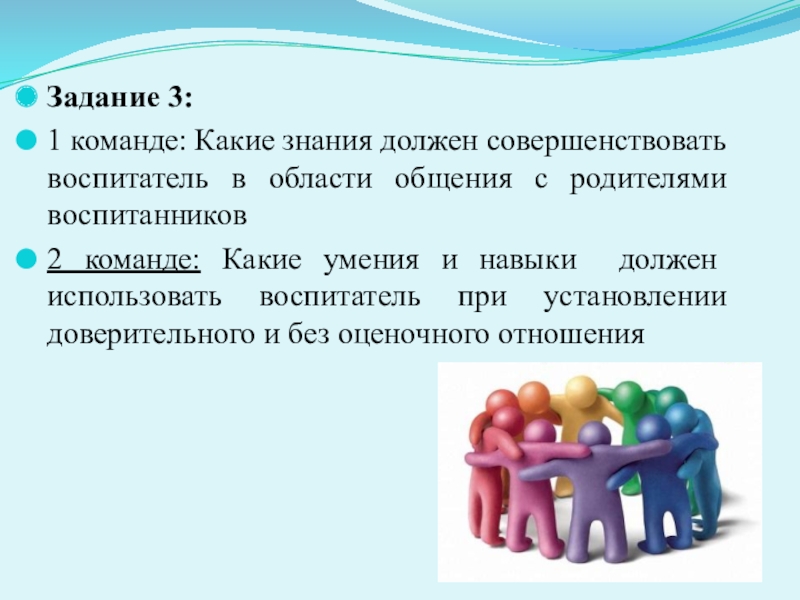 2 команде: Какие умения и навыки должен использовать воспитатель при установлении доверительного и без оценочного отношения
