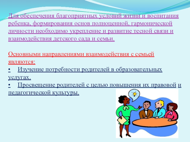 • Просвещение родителей с целью повышения их правовой и педагогической культуры.