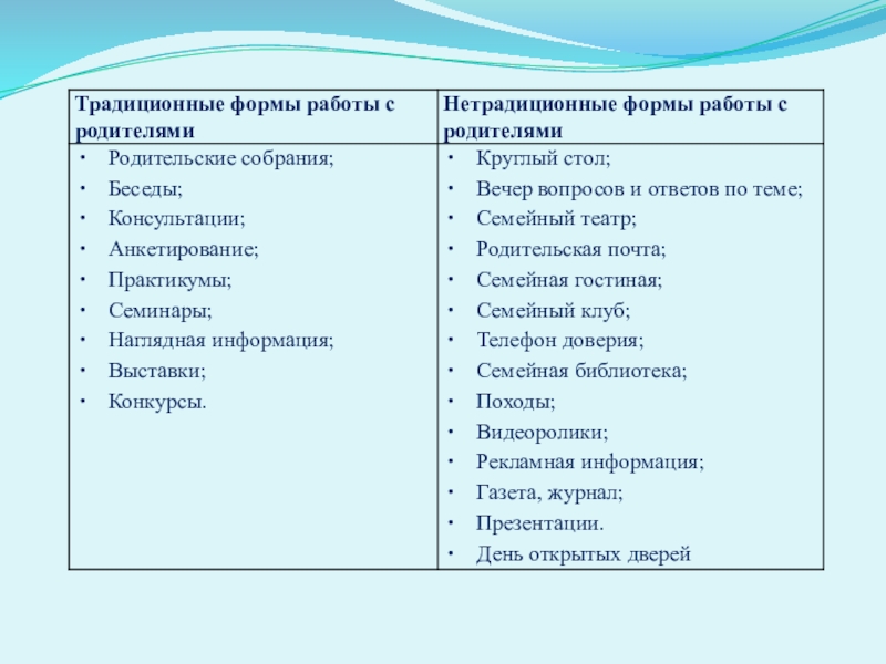 3. Использовать нетрадиционные формы взаимодействия с родителями в рамках проведения родительских собраний.