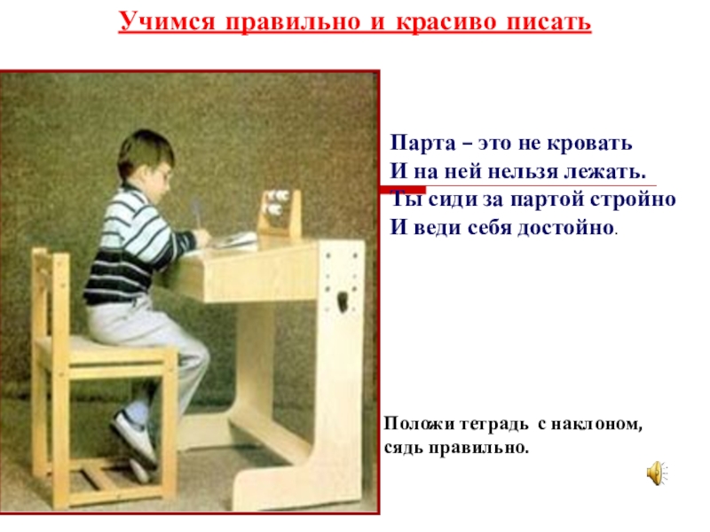 Положи тетрадь с наклоном,