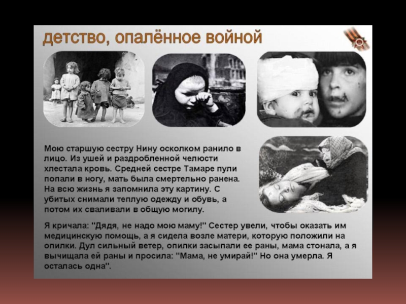 Презентация, доклад для подготовительной группы Детство,опаленное войной
