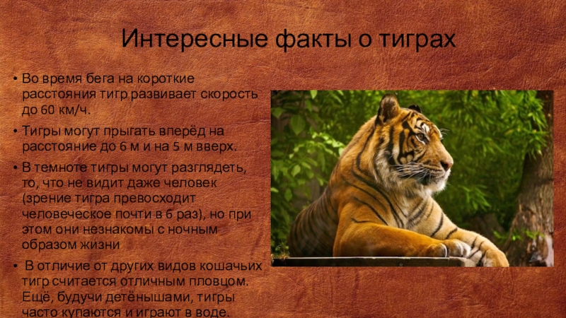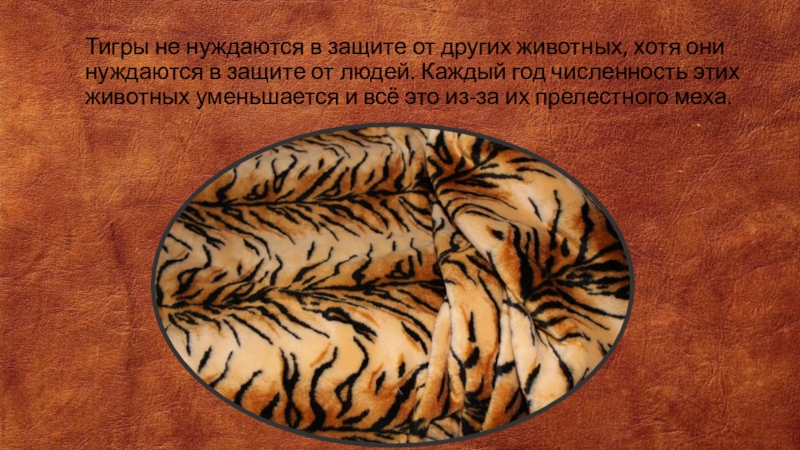 Слайд 8Тигры не нуждаются в защите от других животных, хотя они нуждаются