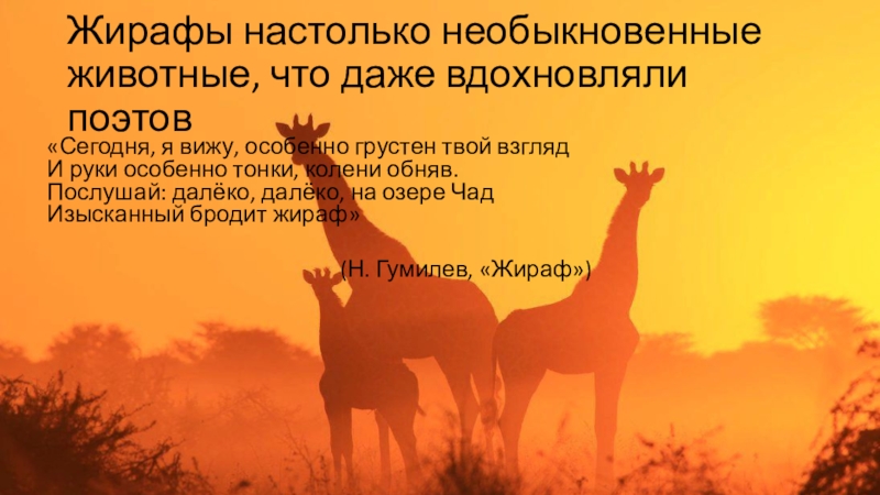 Слайд 15Жирафы настолько необыкновенные животные, что даже вдохновляли поэтов