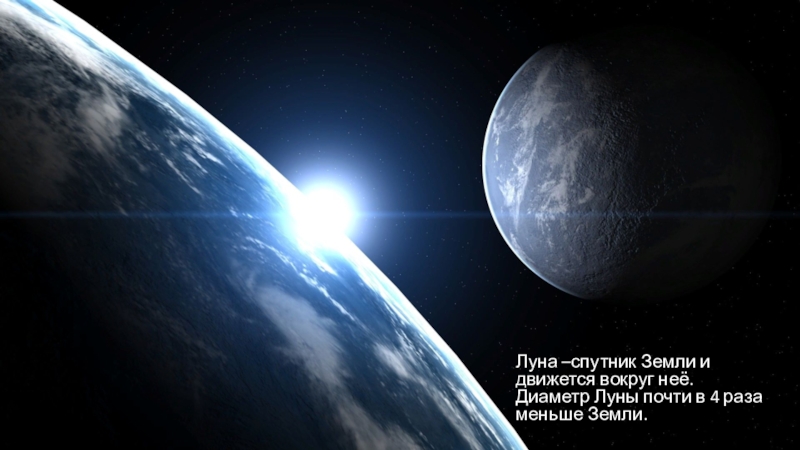 Слайд 10Луна –спутник Земли и движется вокруг неё. Диаметр Луны почти в
