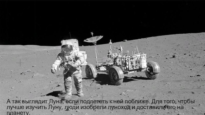 Слайд 11А так выглядит Луна, если подлететь к ней поближе. Для того,