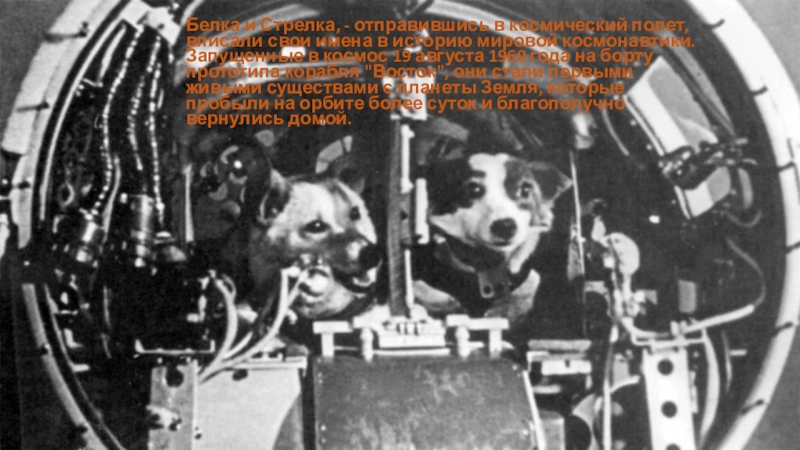 в историю мировой космонавтики. Запущенные в космос 19 августа 1960 года на борту прототипа корабля "Восток", они стали первыми живыми существами с планеты Земля, которые пробыли на орбите более суток и благополучно вернулись домой.