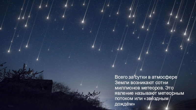 Слайд 19Всего за сутки в атмосфере Земли возникают сотни миллионов метеоров. Это