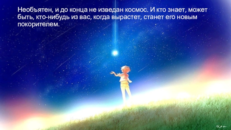 Слайд 23Необъятен, и до конца не изведан космос. И кто знает, может