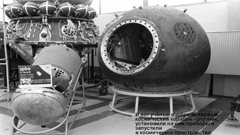 Слайд 6И вот учёные изобрели первый космический корабль - спутник, установили на