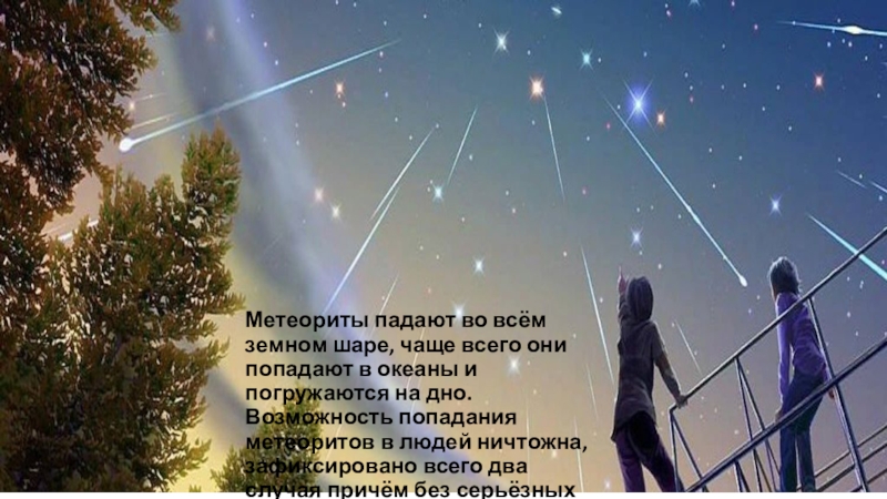 океаны и погружаются на дно. Возможность попадания метеоритов в людей ничтожна, зафиксировано всего два случая причём без серьёзных последствий.